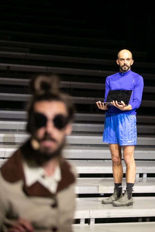 A hatalom hangja egy lelátó szerű terepet ural, szabályokat, parancsokat, utasításokat küld a térbe. Az előadók ebben a hatalmi térben léteznek és személyes szabadságukat, és az azt érő fenyegetéseket tematizálják performatív eszközökkel.